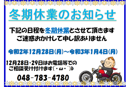 原付バイクの入荷情報やイレギュラーな営業時間 ・